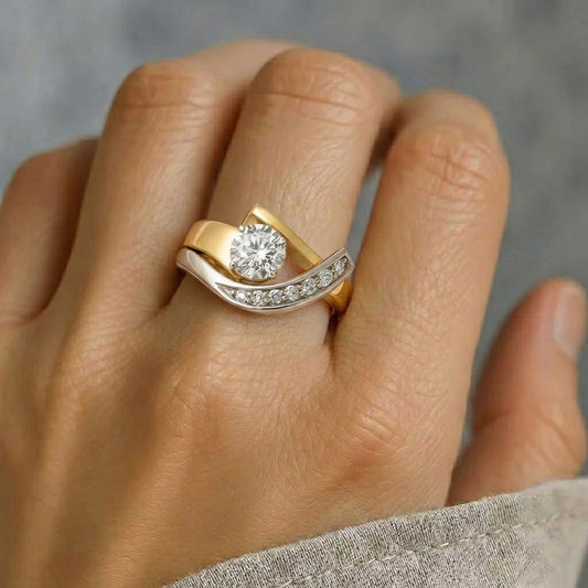 Anillo Vintage Irregular de Oro y Plata con Circonia