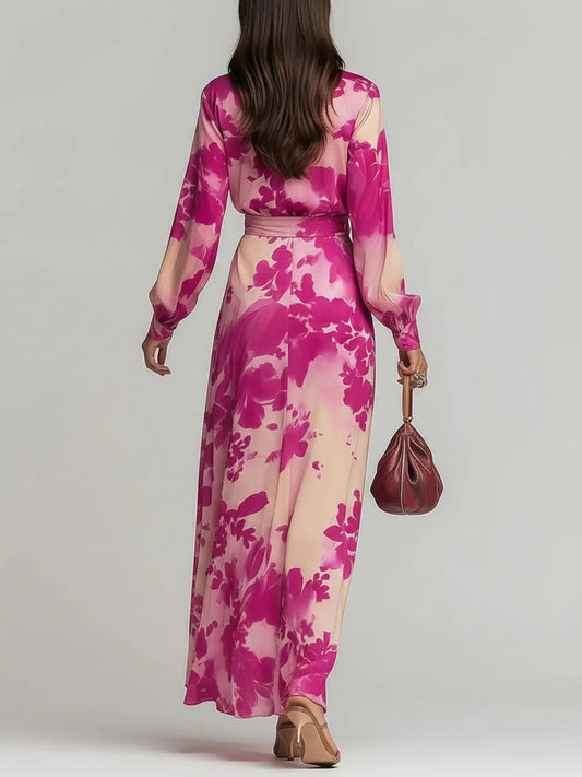 Ariadna | Vestido largo floral rojo con escote en V y cintura definida