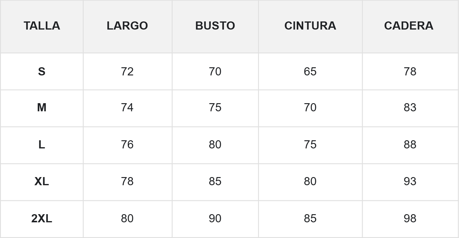 Nuestra ropa se ajusta exactamente a la talla indicada en la tabla de tallas. Encontrarás la tabla de tallas con cada producto, para que siempre puedas elegir la talla correcta y asegurarte un ajuste perfecto. Toda nuestra ropa se ajusta a la talla real, así que puedes elegir tu talla habitual, como con cualquier otra marca.
